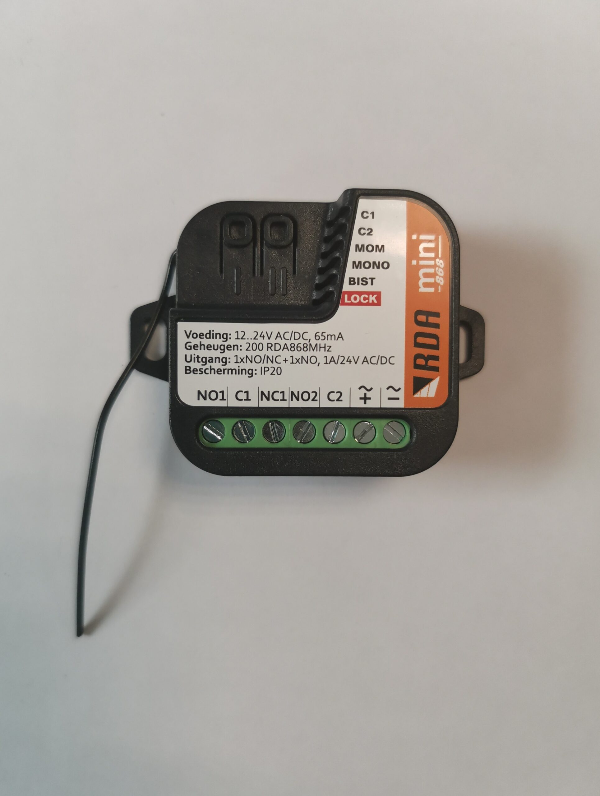 2-kanaals ontvanger (868 mhz/Keeloq) met 200 geheugenplaatsen.